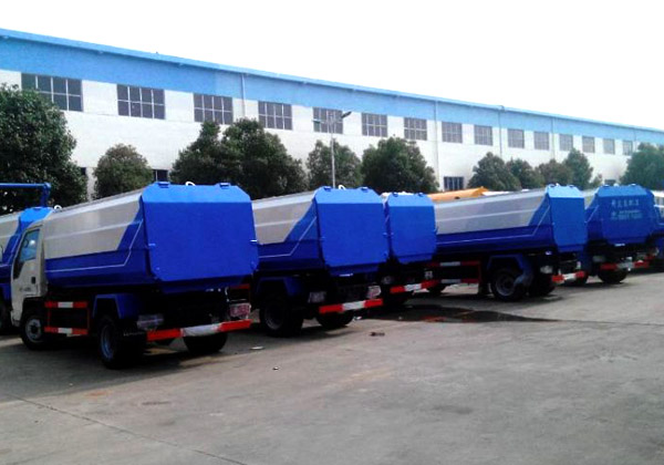 工作原理:自裝卸式垃圾車是由密封式垃圾廂、液壓系統(tǒng)、操作系統(tǒng)組成,能配幾十個垃圾桶,實現(xiàn)一車與多個垃圾桶聯(lián)合作業(yè),廂體上的液壓升降裝置可將垃圾桶吊上、放下,上下升降,上下一次工作循環(huán)時間為50S,密封式廂體環(huán)保衛(wèi)生,可避免二次污染。其自裝式的掛桶裝置可直接將路邊的垃圾桶掛在上面用提升機(jī)直接到在垃圾箱體里面省去了裝垃圾的麻煩。