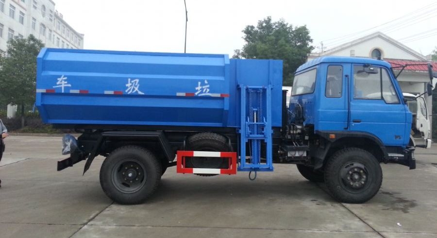 工作原理:自裝卸式垃圾車是由密封式垃圾廂、液壓系統(tǒng)、操作系統(tǒng)組成,能配幾十個(gè)垃圾桶,實(shí)現(xiàn)一車與多個(gè)垃圾桶聯(lián)合作業(yè),廂體上的液壓升降裝置可將垃圾桶吊上、放下,上下升降,上下一次工作循環(huán)時(shí)間為50S,密封式廂體環(huán)保衛(wèi)生,可避免二次污染。其自裝式的掛桶裝置可直接將路邊的垃圾桶掛在上面用提升機(jī)直接到在垃圾箱體里面省去了裝垃圾的麻煩。