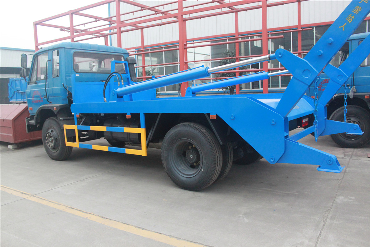 東風153/10噸擺臂式垃圾車底盤配置:康明斯或玉柴發動機,8檔變速箱,5噸前橋,10噸后橋,1000-20胎,帶備胎,斷氣剎,方向助力